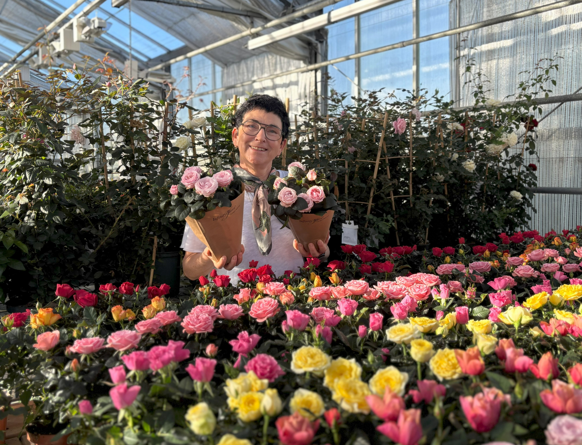 "Infinity-roserne har en X-faktor og skiller sig ud ved deres store fyldige blomster og lange holdbarhed. Vi arbejder hele tiden med at forbedre vores sorter, så de ikke bare er flotte, men også lettere at dyrke, passe og samtidigt er mere resistente," fortæller Rosa.