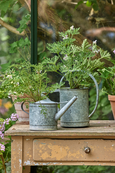 Duftende pelargonier i vintage vandkander ser charmerende ud på en hyggelig skænk (billede 4). Mens hængende og opretstående pelargonier primært er populære for deres dekorative blomster, appellerer duftende pelargonier frem for alt for deres lækre aromaer og karakteristiske bladformer. Deres blade indeholder æteriske olier, der kan bruges på mange måder, for eksempel kan de citron duftende pelargonier bruges til at holde myg og andre skadedyr i skak.