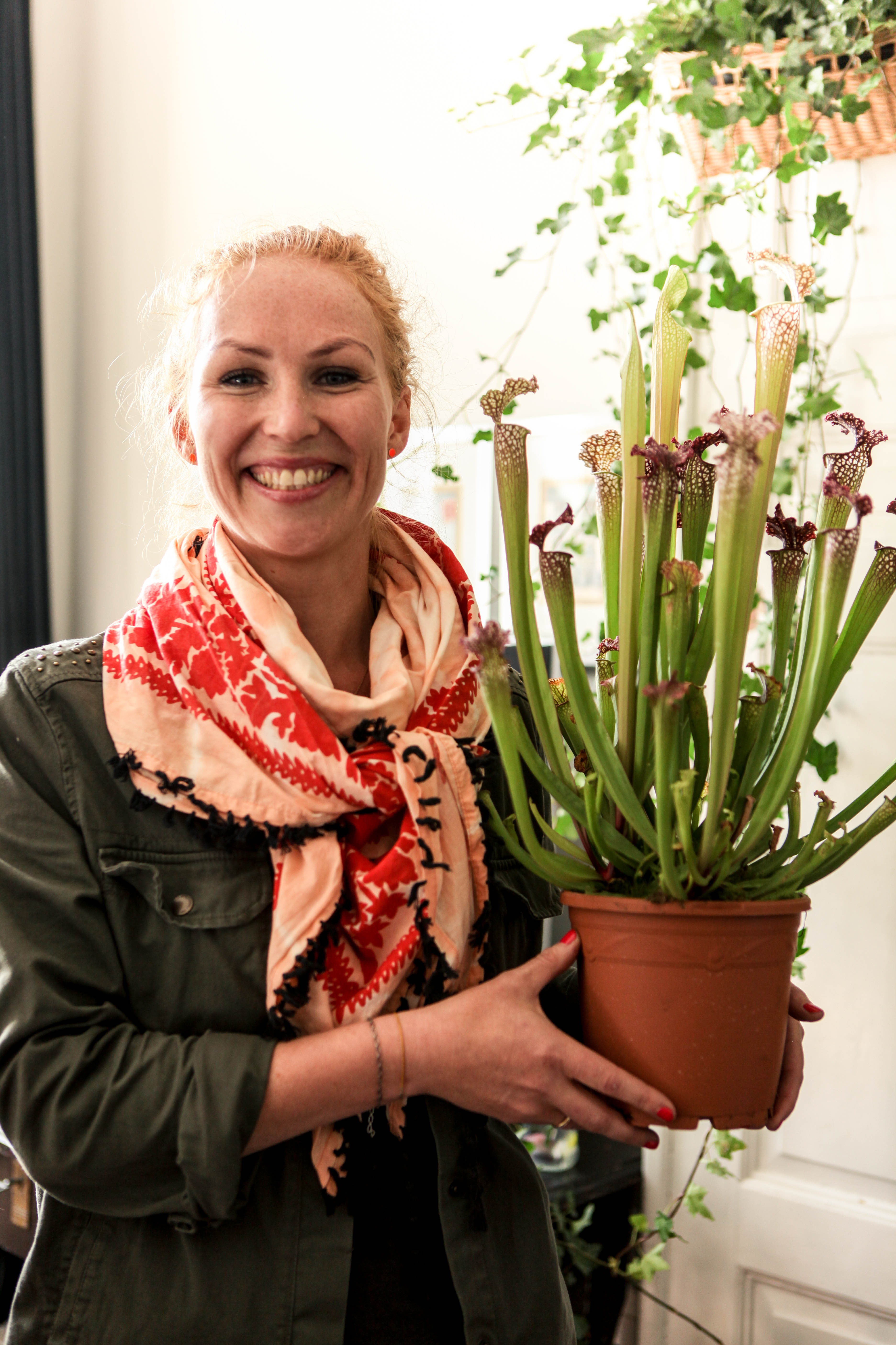 Sarracenia eller fluetrompet. Ud over at kødædende planter er meget flotte og skulpturelle, kan de også plantes ud i krukker. Faktisk er denne her ret hårdfør og tåler ned til -10oC.