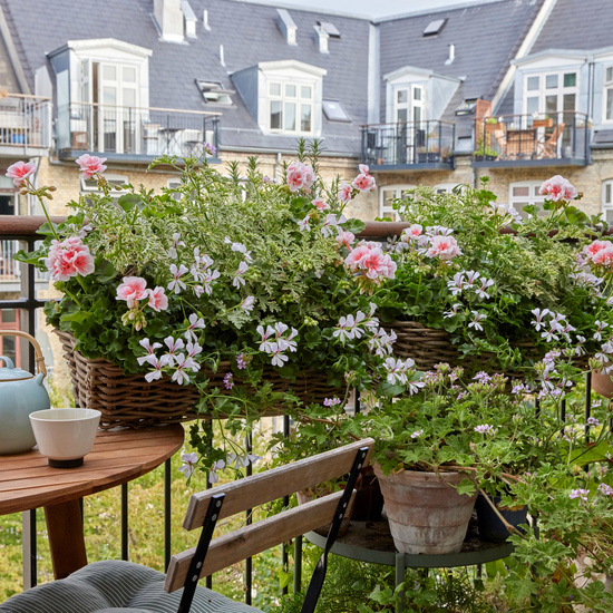 Indret dine sommerrum til frodige blomstrende og duftende oaser med masser af pelargonier.