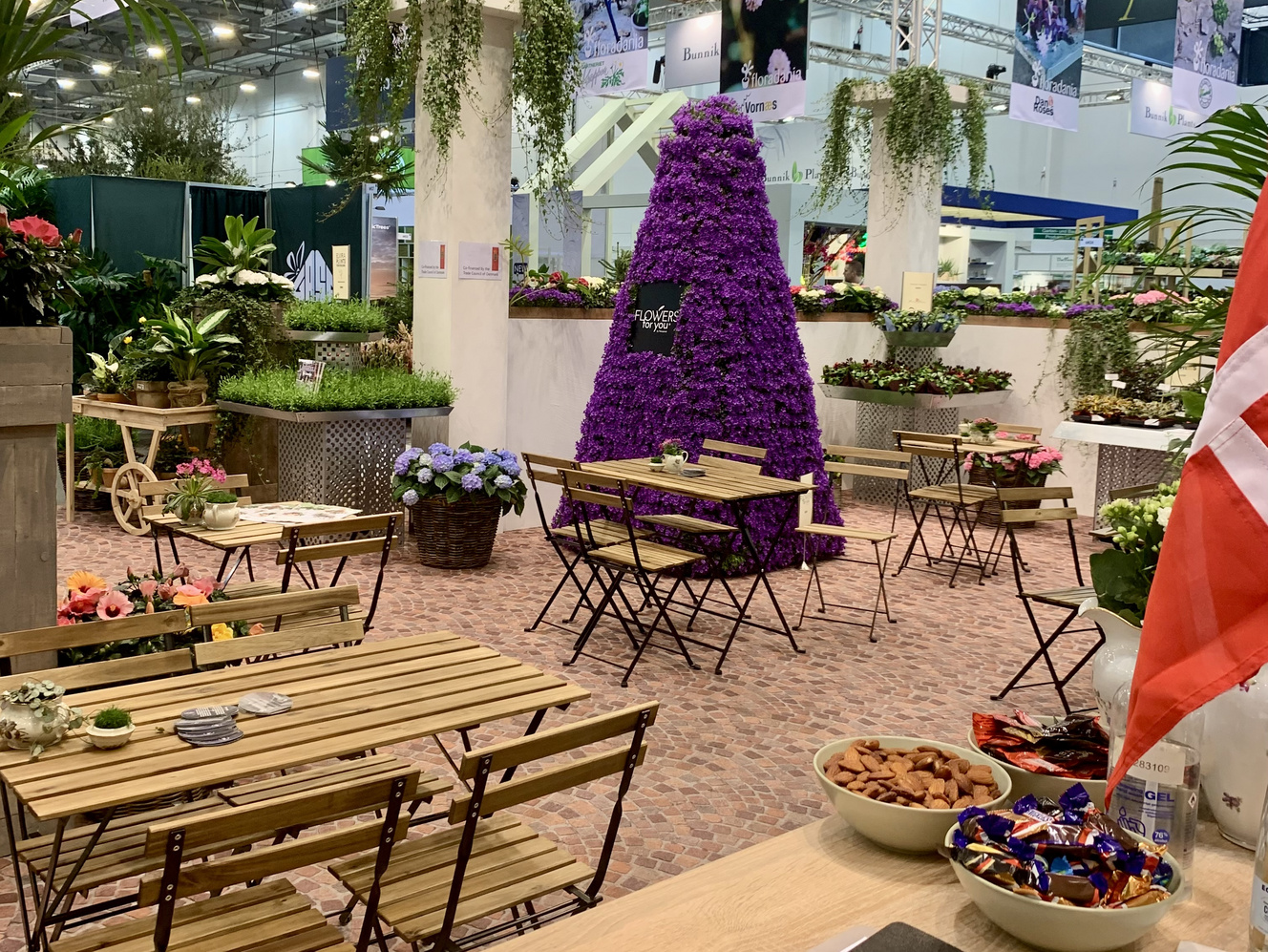 Flora Dania stod for koordinering af en 300 m2 stor fællestand designet til at afspejle den danske sommeridyl, beriget med det uforlignelige danske koncept af 'hygge' rummede fællesstnaden et hyggeligt caféområde samt planter og produkter fra de danske udstillere.